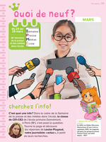 C’est quoi une info? Dans le cadre de la Semaine de la presse et des médias dans l’école, la classe de CE1-CE2 de l’école primaire Damrémont, à Paris (18e), s’est posé la question. Découvre les réponses de Louise Pluyaud, notre journaliste «actus», à partir de leurs recherches. Magazine : Fleurus Presse - Les petites princesse de 5 à 8 ans