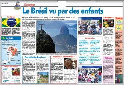 Le JDE (Société Alsacienne de Publications) vous emmène au Brésil pour vous faire découvrir le pays auriverde, hôte de la 20ème Coupe du Monde de Football, en donnant la parole aux enfants qui y vivent.