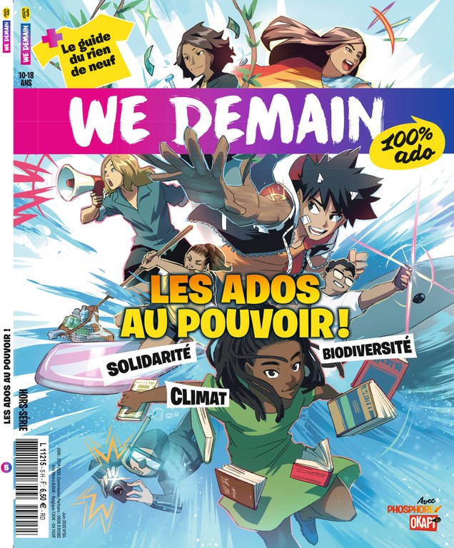 Dans le monde, dans les villes et villages, au collège ou au lycée…et même sur les réseaux, les adolescents s’activent pour plus d’écologie, d’égalité, de respect de chacun. Alliant humour, rigueur d’enquête et d’analyse, WE DEMAIN 100% ADO aide les jeunes à comprendre les grands enjeux autour de l’évolution du climat et de la société, à réfléchir sur leurs propres actions et à agir à leur niveau pour un futur désirable.