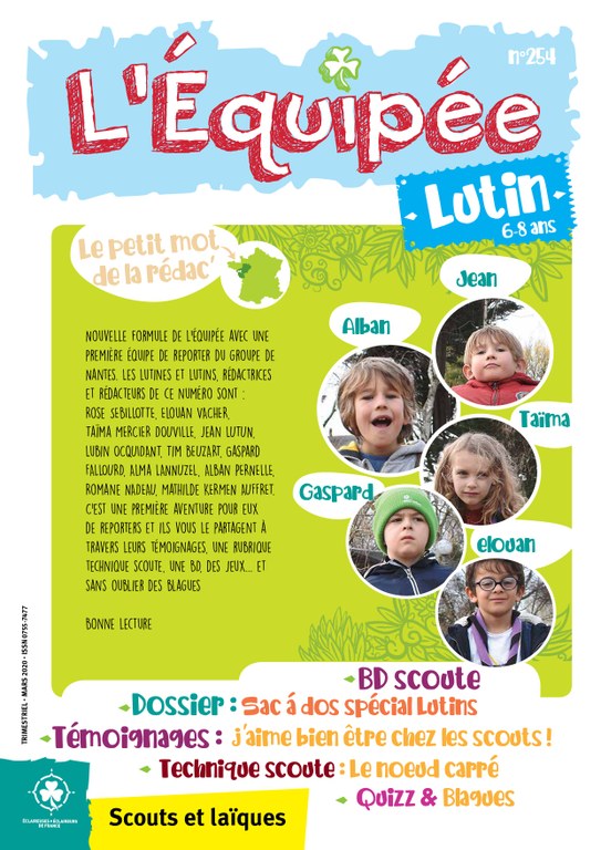 L’Équipée change de format et propose dorénavant un feuillet par tranche d’âge : les Lutin.e.s (pour ls 6-8 ans), les Louveteaux et Louvettes (pour les 8-11 ans), les Éclé.e.s (pour les 11-15 ans) ainsi qu’un feuillet pour les parents pour les informer des devenirs de l’association.